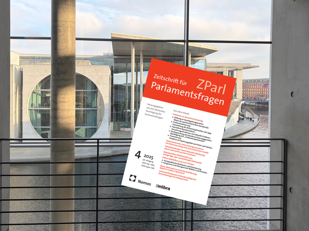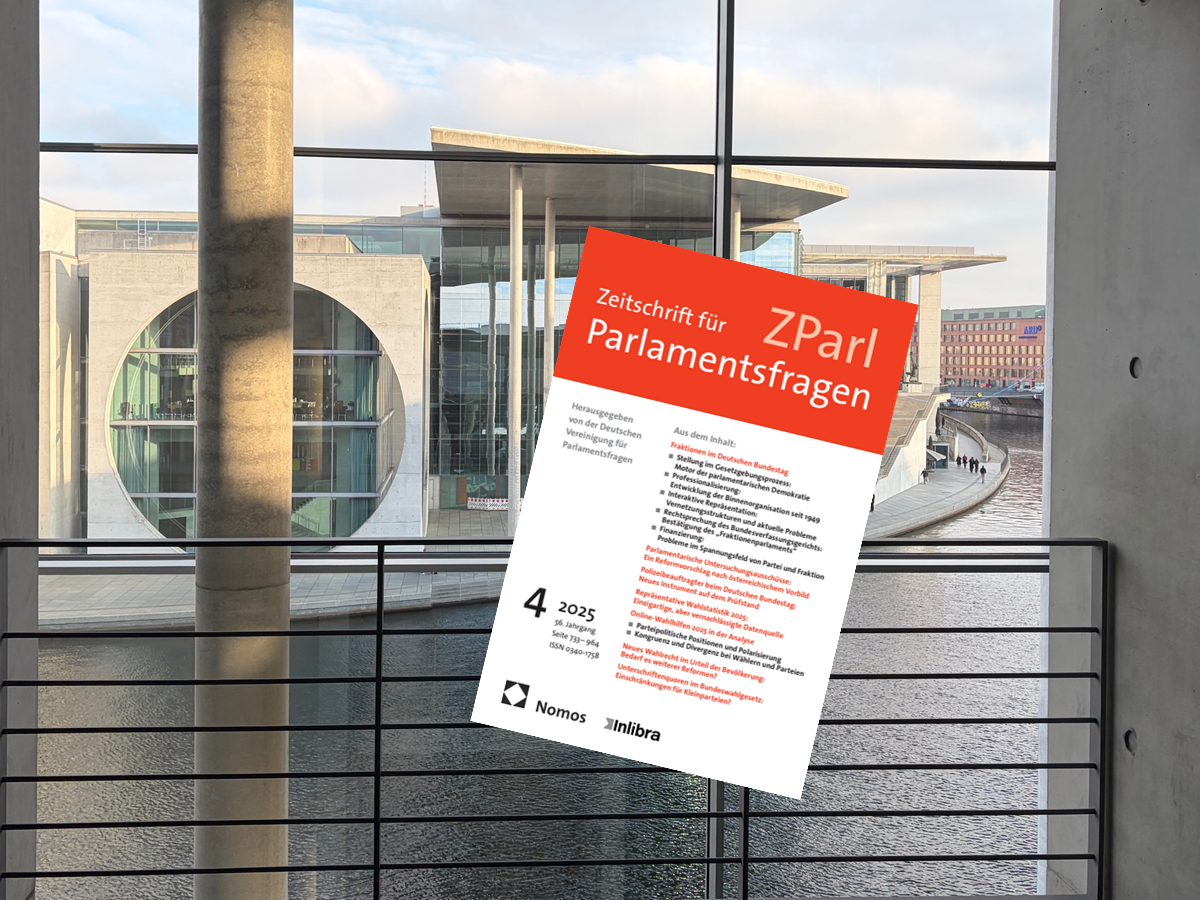 Parliamentary Party Groups (PPGs) are the engines of parliamentary democracy. In a new article, I describe five steps to reach an enlightened understanding of their role in the political process. Find it here: Sven T. Siefken, Fraktionen im politischen Prozess. Fünf Schritte zum Verständnis des Motors der parlamentarischen Demokratie in Deutschland. In: Zeitschrift für Parlamentsfragen, vol. 56. (2025), iss. 4, pp. 733-748. https://doi.org/10.5771/0340-1758-2025-4-859